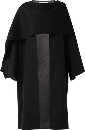 A cozy wool blend keeps you warm through chilly days with this reversible cocoon coat. The detachable scarf, secured by buttons on the shoulder, offers flexible styling to suit your mood. Loose fit and wide sleeves create a comfortable shape that moves with you.