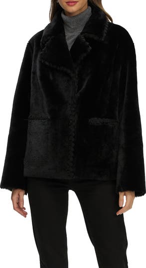 This Reversible Genuine Shearling Jacket combines luxurious warmth with elegant embroidered trim detailing.
