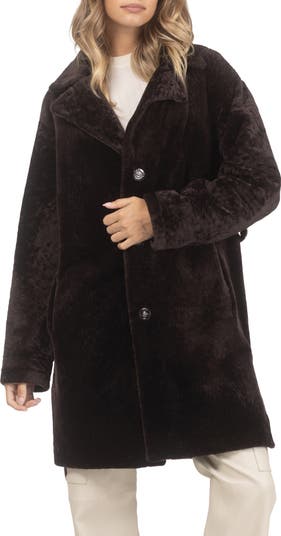 This Reversible Genuine Shearling Stroller combines cozy warmth with stylish texture. Featuring a belted waist, it offers a flattering fit while allowing you to switch between two looks effortlessly.
