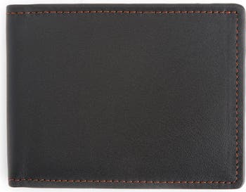 A sleek, leather bifold wallet with multiple currency and card compartments is designed with RFID technology for an extra layer of electronic protection.