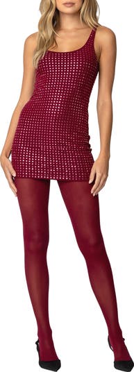 Rhinestone-embellished mesh adds party-approved style to this flirty minidress that ll have you shining and sparking all night.