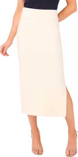 Stretchy rib shapes the curve-hugging fit of this easygoing sweater-knit skirt fashioned with a leg-flaunting side slit.