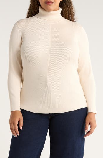 Allover flat ribbing softens and shapes this turtleneck sweater made in a fit that looks great on its own or layered into your look.