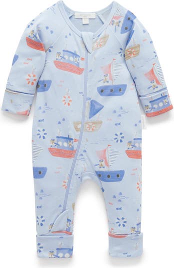 Soft, easy and practical, our iconic Printed Zip Romper is a wardrobe essential for your little one. Featuring a two way zip all the way through with safety folds for quick and easy dressing. Designed with rolled cuffs on the arms and legs to grow with your little one, and inbuilt turnover foot covers. Made from the softest 100% Cotton for a soft and gentle touch against your little one s skin. Available in 2 sweet prints.
