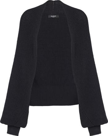 Ribbed knit bolero cardigan Long batwing sleeves Ribbed edging Relaxed fit Model measures 175cm and wears a size S Main material: 44% cotton 44% lyocell 12% polyamide Made in France Item: GF1KL275KJ39