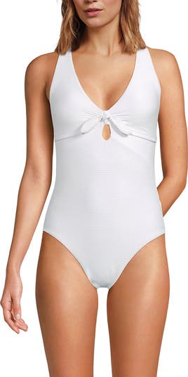 Beach season calls for the ease and elegance of our knotted one-piece. It features a beautiful V-neckline with knot detail and a rib textured fabric for a touch of style. Plus, the crisscross shoulder straps adjust to your liking, giving you a comfortable fit all day long.