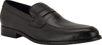 A classic penny keeper tops a leather loafer with apron-toe construction and a Saffiano tongue. Its buffed finish pairs well with both soft and polished fabrics to complement any semiformal or relaxed-formal look.