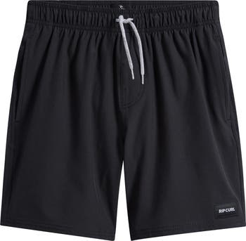 A drawstring waist gives them a perfect fit every time they slip into these stretchy swim trunks made with handy pockets.
