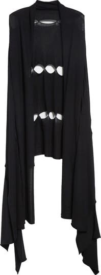 Peekaboo cutouts bring a cheeky aesthetic to this generously sized rectangular scarf made of pure wool.