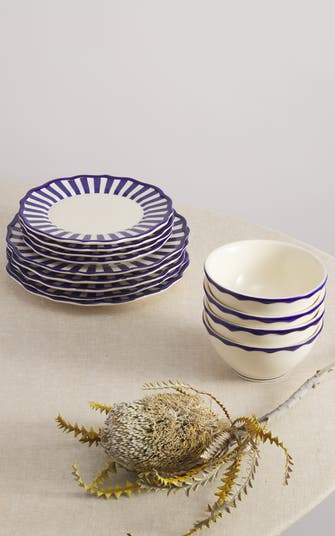 Start a decades long affair with the Italian Riviera. The Riviera 12 Piece Set with Cereal Bowl is an essentials-only dinnerware set with a deep bowl for rice, cereal, and soups. Dinner Plate: 10.5" x 10.5" x 0.75", Side Plate: 9" x 9" x 0.75", Cereal Bowl: 6" x 6" x 4".