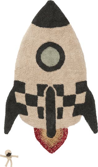Get their room ready for a cosmic journey with this washable rug that s handcrafted into the shape of a rocket. It comes with a little stuffed astronaut friend who s always ready for a new voyage.
