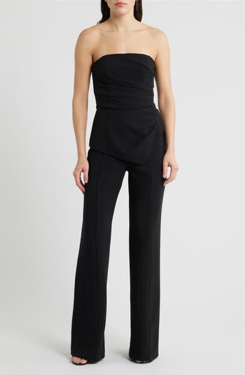 Achieve a two-piece look with one-and-done ease in this strapless jumpsuit shaped by pleating running down the sides.