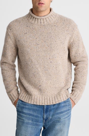 Coming in a Donegal wool blend, this cozy sweater is styled with a slightly rolled neckline. Layer this cold-weather staple under a jacket for added warmth.