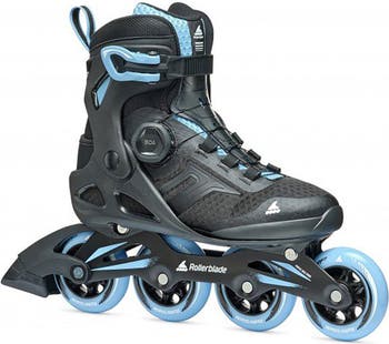 The Rollerblade Macroblade 84 BOA Womens Inline Skates deliver more speed and support for recreational skaters. Outfit with a BOA system, you will experience an enhanced fit, improve response with superior heel hold and creates added stability. The liner of this skate features an engineered mesh that provides added breathability, sock-like comfort and comes with all the cushioning one needs to make skating much more fun. The aluminum frame provides more power transfer and durability and the closure system is easy to use and will keep the foot secure to maximize fit and comfort. The Rollerblade Macroblade 84 BOA is the ideal upgrade for newer skaters ready to improve their skills.