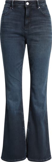 A kicky slit calls out the groovy bootcut silhouette of dark-rinsed jeans cut with a touch of comfy stretch.