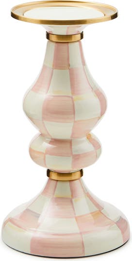 Elevate your illumination situation with the hearty presence of this candleholder that s hand-painted with color-dragged checks and highlighted with gilt details that amplify your candle s flame.