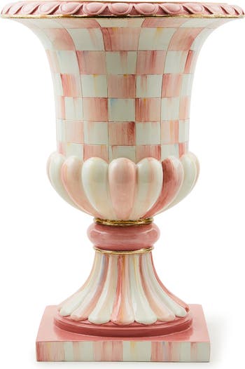 Signature pink checks are hand painted on this sculptural urn that s perfectly sized for topiary drop-ins.