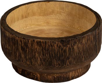 Add a touch of organic texture to an entryway, kitchen, or living space with this natural paulownia decorative 2-tone bowl. Place atop a console table or shelf to display small decorative accents, use in the kitchen to gather fruits and vegetables, or use as a focal point in your tablescape filled with dried or faux botanticals. This paulownia wood bowl is a lovely, natural piece that will subtly enhance any space. The bowl features a natural wood interior and a marbled charred brown exterior, creating a beautiful and varied grain pattern. The bowl is made of paulownia wood, a sustainable and lightweight hardwood that comes from the paulownia fruit tree. The bowl measures 8.25 inches in diameter and 4 inches in height. Complementing styles from farmhouse to modern organic, it is a perfect addition to any space that needs warmth and charm.