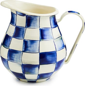Hand-painted color-dragged checks further the retro vibes of this enameled-steel pitcher that highlights everything you pour from it.