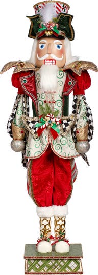 The Mark Roberts nutcracker is a limited-edition holiday collectible, designed by Mark Roberts and meticulously handcrafted to bring classic Christmas charm with an upscale twist. It features a hand-painted cast-resin face and a richly detailed, hand-sewn outfit that includes an elaborate coat with wide collars made of luxurious fabrics, ornate trim, and sparkling crystal accents. Perfect for mantels, entry tables, or display shelves, this festive figure adds a refined, whimsical focal point to seasonal décor and collector showcases.