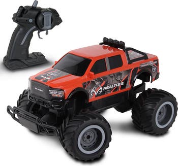 REALTREE: RTR RC - RAM 2500 POWER WAGON - RED - The Ram 2500 Power Wagon represents a blend of heritage, performance, and innovation. This officially licensed powerhouse from NKOK and RealTree is not just a vehicle; it s a force of nature, combining the iconic design of the Ram Power Wagon with cutting-edge RC technology and power. Get ready to redefine the way you conquer terrain! This high performance monster truck features one of the fastest brushless two speed motors NKOK has ever produced! It has so much torque it can perform wheelies and donuts with ease. Hit that turbo button for another dimension of speed. It is completely ready to run! Includes 2 x AA batteries, a rechargeable 7.4v Li-ion battery, and a charger. Operates at 2.4 GHz which allows 16 players to race at the same time, with a range of up to 150 feet! OFFICIALLY LICENSED: The ready to run high performance Ram 2500 Power Wagon Off-Road Monster Truck is part of the NKOK RC collection of official licensed Dodge and RealTree remote control products. Collect them all! (each sold separately).