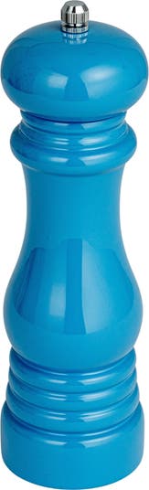 - A robust rubberwood pepper mill, available in blue and various colors, that combines classic design with a modern twist