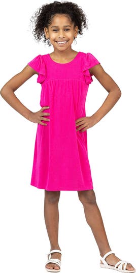 Our 24sevenKid Girls Ruffle Cap Sleeve Knee Length Babydoll Dress has a playful ruffle cap sleeves and darling round neckline, this dress exudes fun, perfect for any summer occasion. Designed with an empire waist and knee length silhouette, it offers a flattering and comfortable fit that is ideal for dancing the night away or enjoying sunny days. Whether she is attending a summer party or simply embracing the joy of the season, this dress promises to be her go to choice for fun and flair. Let her shine in style with our 24sevenKid Girls Ruffle Cap Sleeve Knee Length Babydoll Dress that is made from a soft shimmer material.