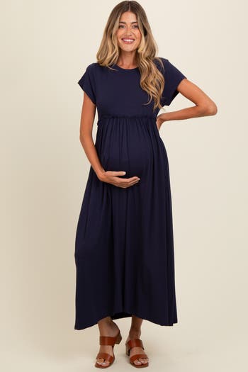 Elevate your maternity style with our Ruffle Trim Maternity Maxi Dress. Designed for comfort and elegance, this dress features a flattering empire waist, soft stretchy fabric, and charming ruffle accents along the sleeves and hem. The flowy maxi silhouette ensures room for your growing bump, while the eye-catching hue adds a fresh touch to your look. Perfect for baby showers, brunches, or photoshoots—just add your favorite sandals or heels for an effortlessly chic outfit. Enjoy versatility and all-day comfort with this beautiful maternity must-have!