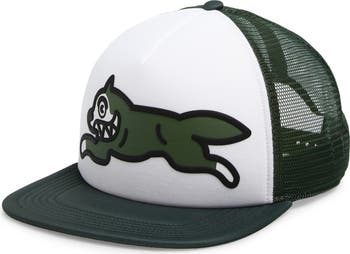 A signature canine patch bounds across the front of this forever-classic trucker hat made with breathable mesh panels and flat brim.