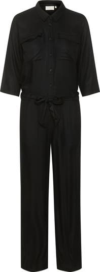 The ruthie jumpsuit is a cool and casual eveyrday style. It has a spread collar and buttons down to the drawstring waist. The sleeves are half-length with a straight fit and the jumpsuit has straight legs. It has two large chest pockets with flaps.