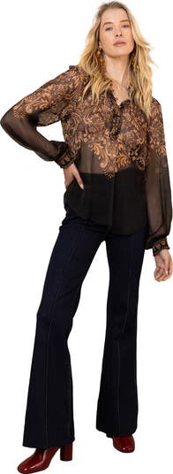 Silk Crinkle chiffon Jersey cami included Smocking around neck Buttons at front keyhole Long sleeve with smocked cuff