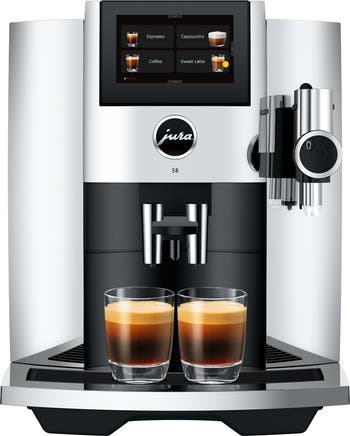 Additional features: The integrated 4.3" high-resolution color touchscreen display makes the machine incredibly simple to operate. With a gentle touch of your fingertip on the screen, your favorite beverage flows into the cup. The innovative new operating concept has intuitive swiping controls and endless customization options and is specially designed for preparing specialty coffees with milk and milk foam. The milk frother creates lattes, macchiatos and other beverages with fine-textured foam and features an exclusive Sweet Foam function that flavors the milk foam with a hint of syrup, allowing you to choose the flavor, sweetness and intensity. The S8 model is equipped with Wi-Fi Connect for use with the J.O.E.® (JURA Operating Experience) app. The Intelligent Water System (I.W.S.) with RFID technology automatically detects the CLEARYL Smart+ water filter and has an automatic one-touch milk system cleaning for quick and easy maintenance..