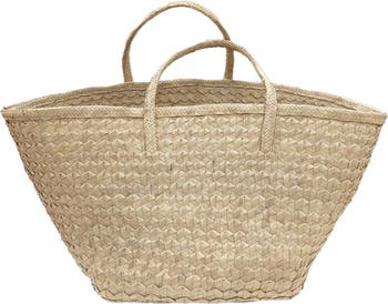 Our Sabi Triangle Fold Weave Palm Tote is handmade by our skilled artisan partner using natural palm leaf that has been dried and woven together to create a durable, fun carryall for all of your essentials! 25" W x 13" H (7" handle drop) Natural color Made from woven palm leaf Locally sourced natural fibers Unlined