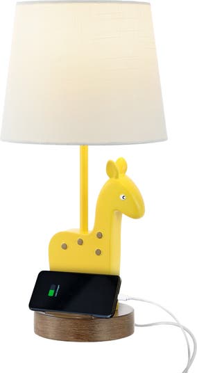 Sahara 17.5" Mid-Century Vintage Iron/Resin Giraffe LED Kids Table Lamp with Phone Stand and USB Charging Port, Yellow