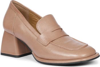 A flared block heel and square toe modernize this elegant, timeless loafer pump crafted from rich leather for a distinctive look that s still comfortable.