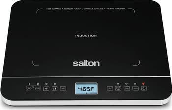 The Salton Induction Cooktop and Temperature Probe work together to deliver automatic precision cooking for sous vide, deep frying, and slow cooking in one simple and sleek gourmet appliance. Whether you are new to the kitchen or a seasoned chef, this product will help you create flawless and repeatable dishes. The 10 temperature settings from 60°C to 240°C (140°F to 465°F) and 1500 watts provide the power to melt butter, steam, sear, stir-fry and boil. Boasting a solid crystal glass top, count down timer and easy to clean touch sensitive controls, this deluxe Induction Cooktop is perfect for everyday use.