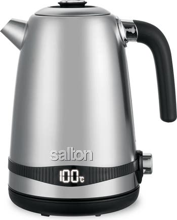 Different teas taste best at different temperatures. The Salton Variable Temperature kettle lets you choose the perfect temperature at the turn of a dial. From oolong to chai to herbals and black - the perfect cup of tea is always available! Tuck the cord under the 360° base for a clutter-free counter top. With a perfect pour spout and digital display, this sleek, stainless-steel kettle is the ultimate addition to any kitchen!