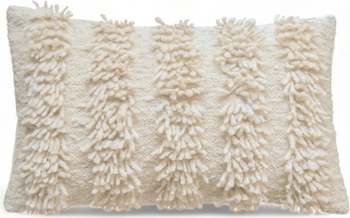 - Natural Ivory Handcrafted in India Front: Natural hand-spun wool with a cotton warp / Back: 100% cotton canvas Dimensions San Antonio - 12” H. x 20” W. / San Antonio - 30 cms. H. x 50 cms. W. Pillow inserts are not included. ________ Care: Each pillow is hand-loomed using hand-spun wool, spot clean only. This product is not intended for high traffic or commercial use.