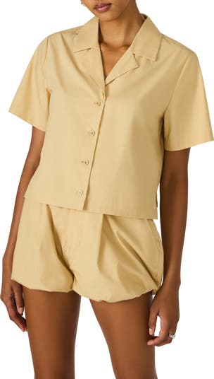 A slightly cropped length puts a fresh, contemporary spin on this button-front shirt in a lightweight cotton weave.
