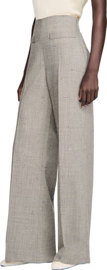 Straight, wide-leg wool trousers with a check pattern and a side zip fastening.