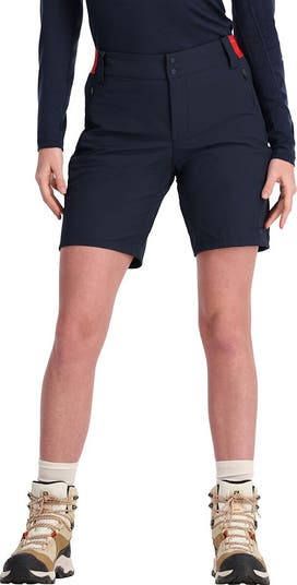 The Kari Traa Sanne Outdoor Shorts 8in are a pair of lightweight womens shorts for outdoor activities. The crotch gusset, 4-way stretch material and adjustable, elasticated waist give you complete freedom to explore the outdoors. The shorter length is super for high-intensity hiking trips in warm climates, while the water-repellent treatment has you covered in case you run into a rain shower.