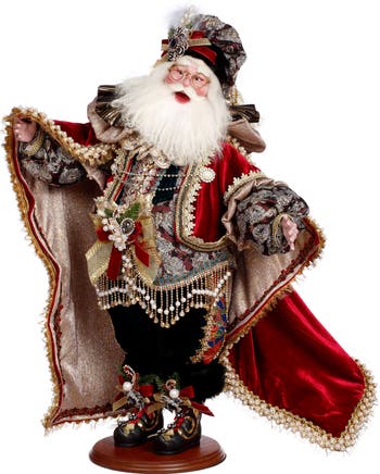A Mark Roberts Santa in Paris captures the magic of the holidays with a chic, old-world French twist. Dressed in rich fabrics and intricate trims, he looks like he’s just stepped off a snowy stroll past the Eiffel Tower with a sack full of joy. It’s a whimsical, collectible accent that brings cozy Christmas charm and a touch of Parisian elegance to any space.