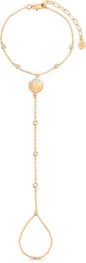 A delicate chain drapes from your finger to your wrist in this cubic zirconia and shell piece sure to evoke your inner mermaid.