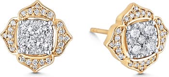 Sara Weinstock s signature quatrefoil sparkles from its pavé-diamond center and filigree sides in these gleaming 18-karat-gold stud earrings.