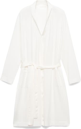 Raglan sleeves ensure you ll be lounging comfortably in this cotton-blend robe that s elevated by sleek satin trim and patch pockets.