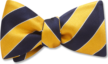 You will absolutely, positively never go wrong with a handsome woven silk in classic navy blue and gold stripes bordered with slim ribbons of white.