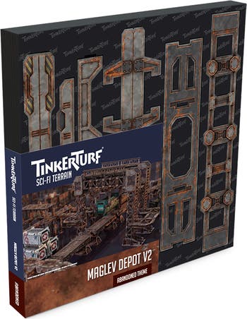 Tall and foreboding, the massive MagLev Depot V2 puts dramatic purpose to the industrial battlescape. The imposing structure is topped by a railed catwalk, reachable by any of four perimeter ladders integrated into the support pillars. Included ladder stands allow figures to be perched anywhere along the ascent. Underneath the span is a crane that can be moved side-to-side, sized to fit the Containers from our other sets. Two large platforms attach at either end of the structure or double-stack on one side and match the standardized heights of TinkerTurf platforms. The platforms can be re-positioned between battles (or even during a battle for dramatic effect). This is a champion-grade centerpiece of a military-industrial battlefield sure to create lasting memories of sci-fi combat. INCLUDES: • MagLev Structure • Container Crane • 2 Adjustable Side Platforms