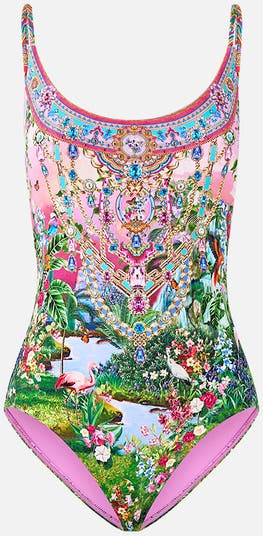 Inspired by bodrum bohemia and beautiful bougainvillea flowers, the Turkish Delight Scoop Neck One Piece With Scoop Back is a handcrafted silhouette designed by our in house artisans. Reimagined in an exclusive limited edition print, our scoop neck one piece is made with B to C cups in mind. Featuring a soft scoop neckline and scoop back, it has adjustable straps and soft removable cups for tailored support. Cut with a regular-to-low leg line and moderate bottom coverage, this silhouette balances comfort with a flattering fit.