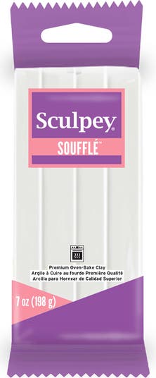 SCULPEY SOUFFLE: IGLOO - 7OZ - If you re looking for strong, flexible clay with an outstanding finish, you ll find it with Sculpey Soufflé. Soufflé is an innovative lightweight clay that after baking, has a beautiful suede finish. Soufflé is strong and holds detail making it the perfect choice for advanced techniques like caning, mokume gane and bargello. Super flexible - can be cut and sewn after baking - perfect for embellishing bags, making tags, enhancing paper crafting and more! Stays soft until baked - Does not air dry. Remains soft until it is baked in your home oven. Extra clay can be stored and reused - won t dry out! Great for a variety of projects such as: jewelry, DIY home décor, mixed media and more! Is Sculpey Soufflégood for earrings? Sculpey Soufflé is durable, self-supporting and resistant to cracking when baked, even in large creations. It s an excellent jewelry-making clay thanks to its light weight, which makes it perfect for pieces like earrings. SAFE AND NON-TOXIC! HOW TO WORK WITH SCULPEY SOUFFLÉ: After you have all your clay supplies organized and ready, it s time to start crafting. To ensure the clay stays in good condition while you handle it, keep your work surface, hands and tools clean. One of the best ways to keep all your clay organized for specific projects is to use a metal baking sheet, wax paper, disposable foil or the Sculpey Oven-Safe Work Mat as your work surface. These materials act as a barrier between your clay and table, helping maintain the integrity of both and prevent staining on the table. Plus, once you ve finished assembling your beautiful creations, you can easily place the moveable work surfaces onto a glass or metal tray if you re not already using one, and pop them into the oven to bake. Besides organization, there are other TIPS TRICKS for working with Sculpey Soufflé clay. To begin any process, you ll want to knead the clay until it s soft and smooth.