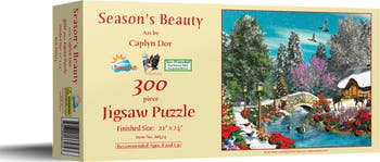 Experience the joyous tranquility of winter with the Season s Beauty 300 piece jigsaw puzzle, creatively crafted by renowned artist Caplyn Dor. SunsOut Puzzles deliver a frustration-free assembly with their finely interlocked pieces, made with premium, recycled cardboard that guarantees hours of enjoyable puzzle building. The completed puzzle proudly radiates an enchanting scene of nature s serene beauty coupled with the festive spirit of the holidays. With a completed size of 21" x 24", it s not only a picturesque spectacle but also an achievement you can take pride in. Each piece adds to this breathtaking portrait, making it an invaluable addition to your puzzle collection. The superior craftsmanship, evident in the durable pieces and large, full-color display box, promises an enjoyable and smooth assembly experience while ensuring your puzzle is safely stored and ready for repeated use. SunsOut Puzzles are not only a manifestation of top-tier puzzles but also a testament to their commitment to customer satisfaction and excellence. Made in the USA, these puzzles come with a worry-free guarantee for any missing or damaged pieces, along with an assurance for a splendid puzzle building adventure. SunsOut puzzles are also a beacon of sustainability, utilizing soy-based inks and recycled board. Above all, completing a SunsOut puzzle is a journey into the creative minds of licensed artists whose captivating images you can support while also caring for the environment. Celebrate the spirit of the holidays and the serene beauty of nature as you unwind and escape into a winter wonderland with every piece you place.